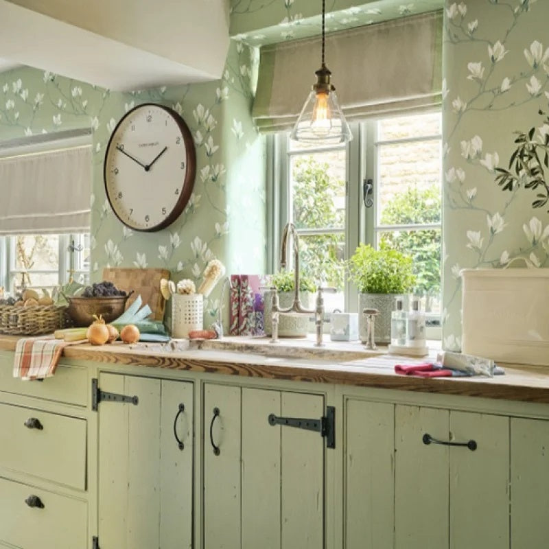 Paint Pairing Tip: In the kitchen, try pairing the Natural Magnolia Grove wallpaper with Natural or Hedgerow paint to add warmth, or opt for Pearl for a clean, fresh look.