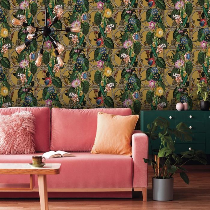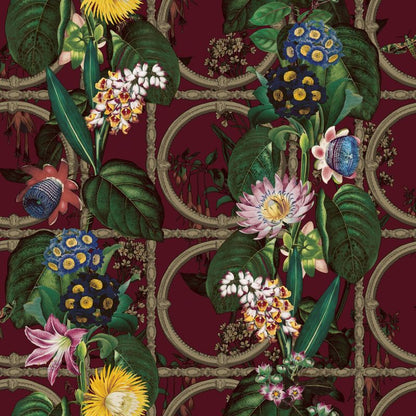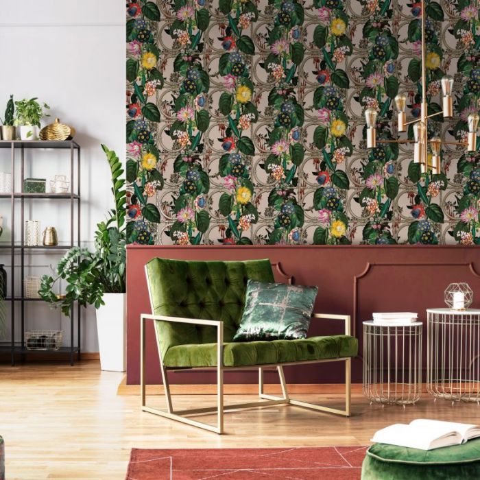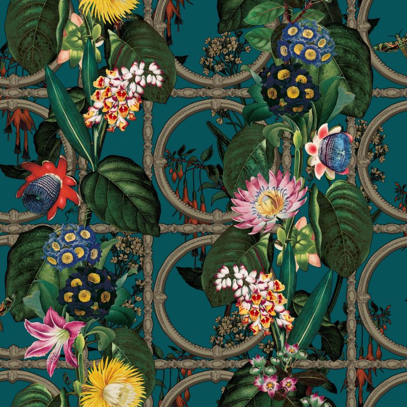 Intricately intertwined around a metal gate design, this wallpaper delivers a strong architectural core with a detailed leafy design and gorgeous bright botanical flowers throughout. This quirky paper truly delievers a feeling of grandure and fun. The richness of the design means it can be partnered with a myriad of colours, making it a great choice for a feature wall in any room in the house.