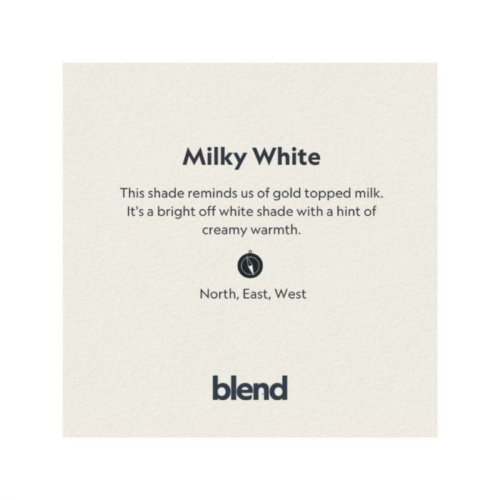 “This shade reminds us of gold topped milk. It's a bright off white shade with a hint of creamy warmth.” Milky White is the warmest and creamiest of our off whites and as the name suggests really reminded...