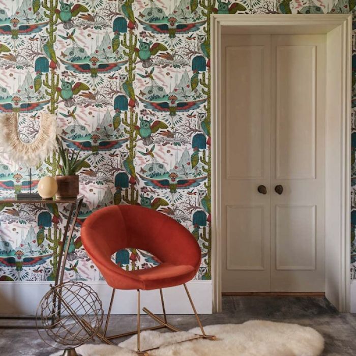 Inspired by Emma J Shipleys visits to Yosemite national park in California, this incredible wallpaper design includes an array of curious creatures in bold and bright colours, whilst sat on a contrasted off white background to really bring this magnificent pattern to life. Adding a magical touch and a bold focal point to any space in your home, we think this maximalist wallpaper would make a fantastic addition to a bedroom, living room or dining space.