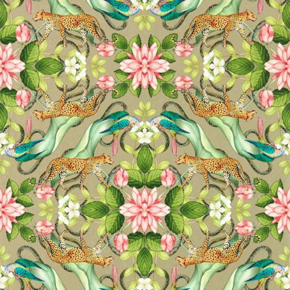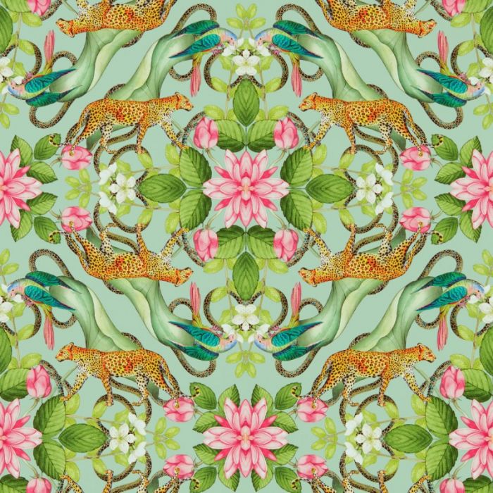 Read More...The Clarke & Clarke Menagerie Wallpaper is a stunning maximalist design featuring a mix of parrots, lush flora, water lilies, and the powerful African Leopard.
