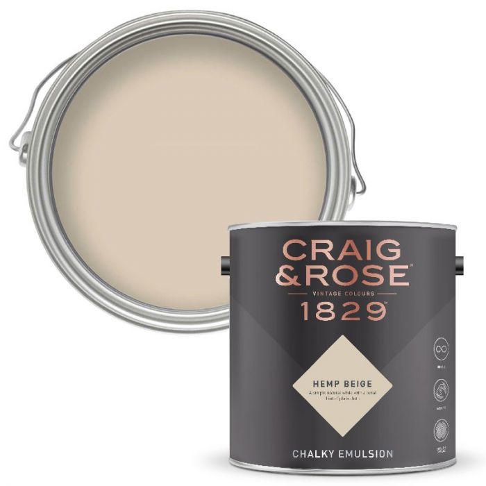 Craig & Rose 1829 Paint - Hemp Beige Hemp Beige is beautifully simple hue for pure and elegant spaces, this natural white boasts a tonal hint of plain cloth. Use with 1829 White Undercoat. Order a colour patch...