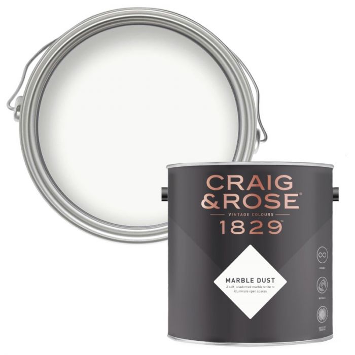Craig & Rose 1829 Paint - Marble Dust A soft, unadorned marble white. Vibrant and with a natural brightness, it beautifully illuminates open spaces. Order a colour patch sample of Marble Dust to test the colour in your...