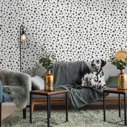 Read More...Dalmatian Wallpaper is another Dalmatian print design from Holden. It features black spots with furry edges on top of a light pink or white background.