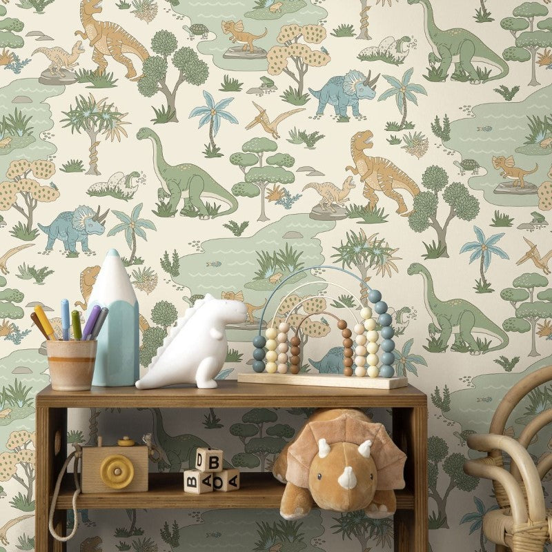 Read More...Take a walk on the wild side with this fun and quirky dino themed pattern, perfect for creating a playful space full of adventure. Featuring a lively cast of dinosaurs alongside snakes, frogs, tortoises and more, this charming design has everything to spark your little one’s imagination.