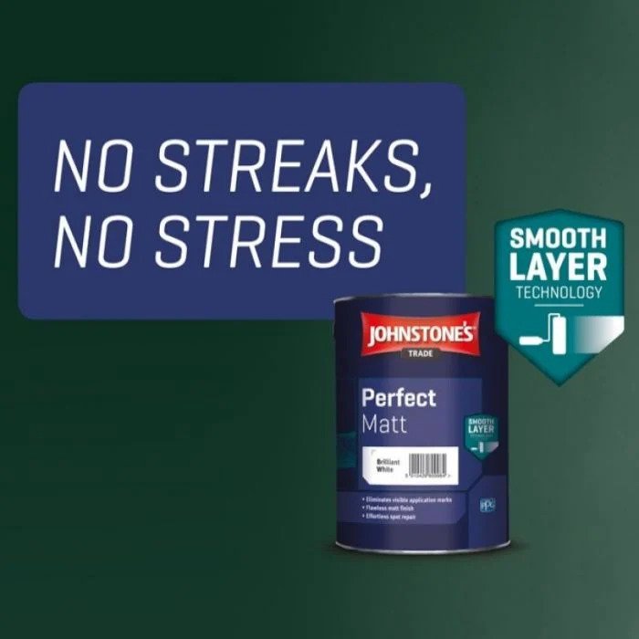 Read More...Johnstone’s Trade Perfect Matt delivers a superior matt paint finish, perfect for using on walls and ceilings to create a flawless-looking finish even in the brightest of lights. This Perfect matt paint eliminates the impact of visible application marks that can sometimes be highlighted by critical lighting.