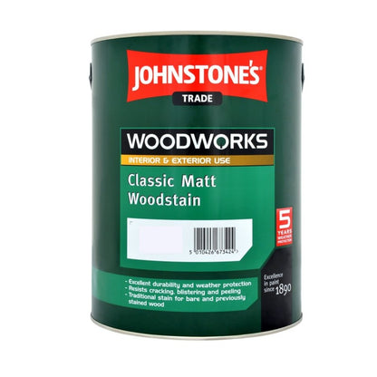 This Johnstone's Trade Classic Matt Woodstain has a microporous finish which is resistant to cracking and peeling. With a high coverage of 16m² per Litre, this product is recoatable in 16-24 hours.