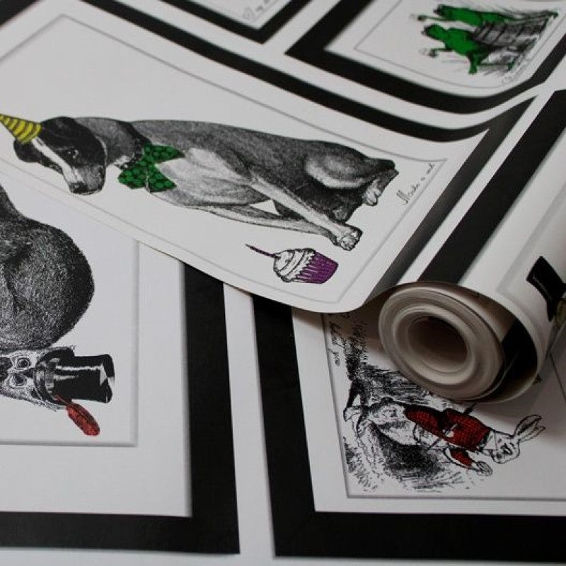 Read More...Bring a quirky and fun touch to your home with the Mad Dogs Framed Animal Wallpaper in Black & White, a design perfect for creating an eye-catching feature in any room. This playful wallpaper showcases framed black and white scenes featuring amusing animals, each paired with charming phrases and the occasional splash of colour for added personality.