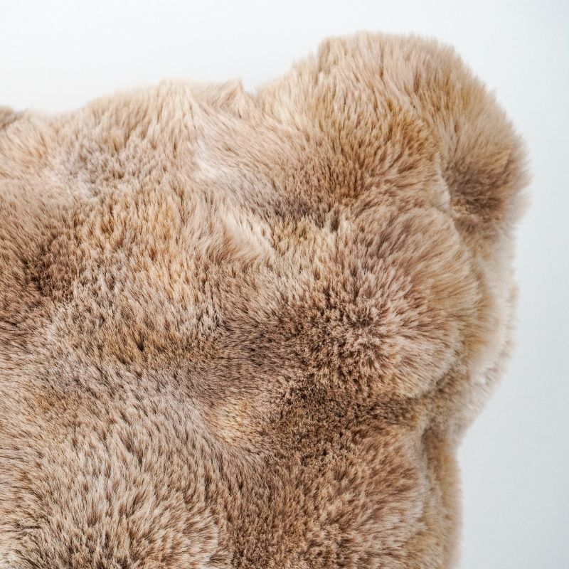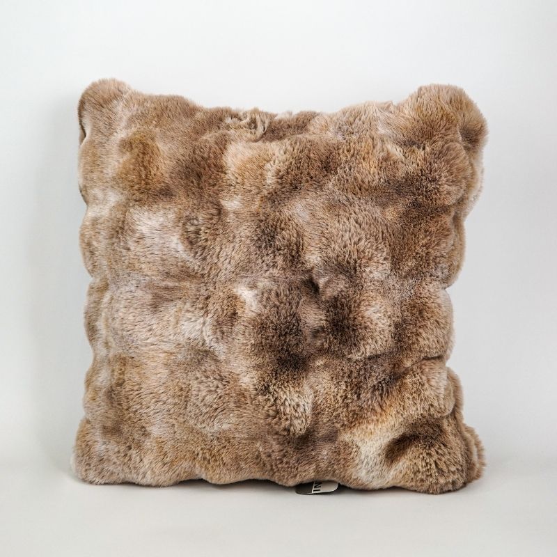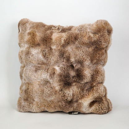 Featuring a natural textured faux fur in elegant cream and brown tones, this luxury cushion adds sophistication to any space. Its plush, fluffy cushion design invites relaxation, making it ideal as a sofa cushion or chair cushion.