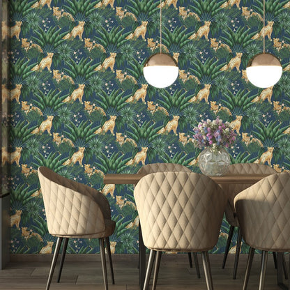 Tap into your wild side while staying grounded with this mid-century modern take on cheetah wallpaper. He looks so at home against the leaves, you might not notice his allure at first glance, but once you catch his gaze, it’s hard to look away. Make the animal the star of the show with the contrast of Ink, or keep him concealed with the camouflage of Sable & Lime. Easy to apply to your walls, this paste the wall wallpaper can be used throughout an entire room for maximum impact or used on an eye catching feature wall to create a dramatic addition to your interiors.