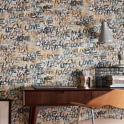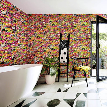 Ohpopsi Love Scribble Wallpaper Hoping to make any guest feel at home the moment they walk through the door? This scribble wallpaper makes the bold statement that anyone is welcome into the warm fold of your nurturing space...