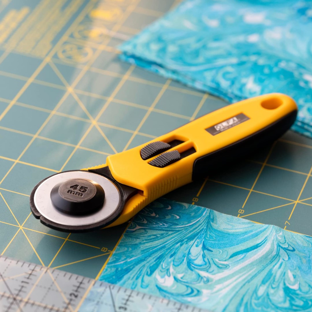 Read More...A high quality rotary cutter from Olfa with a 45mm diameter blade. It is ideal for cutting multiple layers of fabrics, great for cutting squares, strips, circles and patterns fast and efficient.