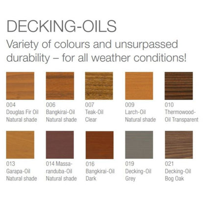 If a less intenstive colour is desired, the second coat should be carried out with clear Anti-Slip Decking Oil. (Does not apply for clear Teak-Oil 007)