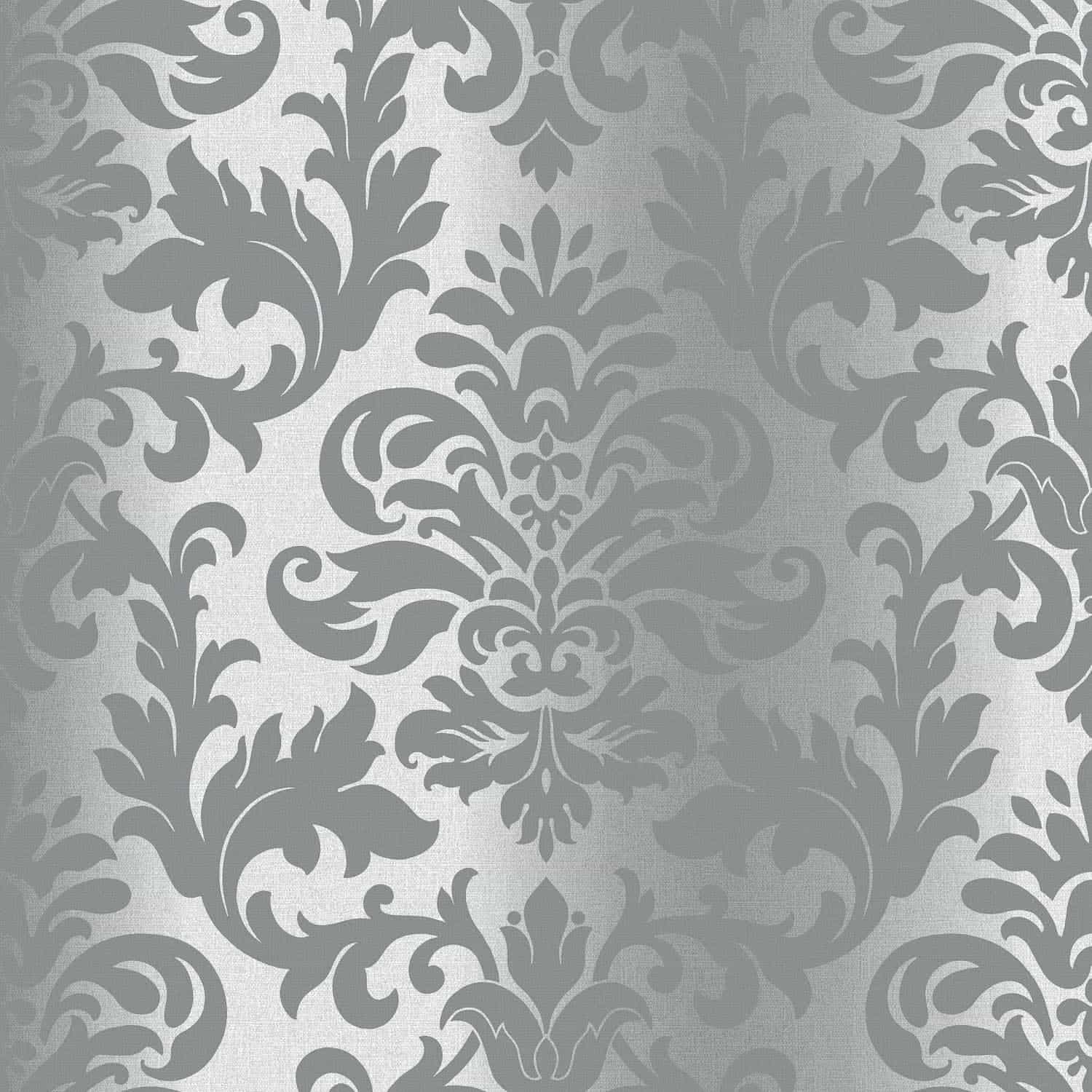 Platina Damask Metallic Wallpaper Charcoal/Silver Sample