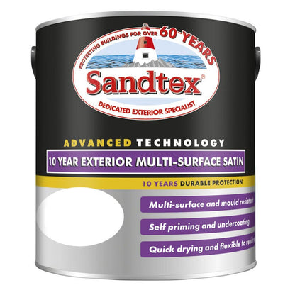 Read More...A durable multi-surface paint, the Sandtex 10 Year Exterior Satin Paint is available in 9 different colours. It can be used on a variety of wood, metal, uPVC and concrete surfaces.