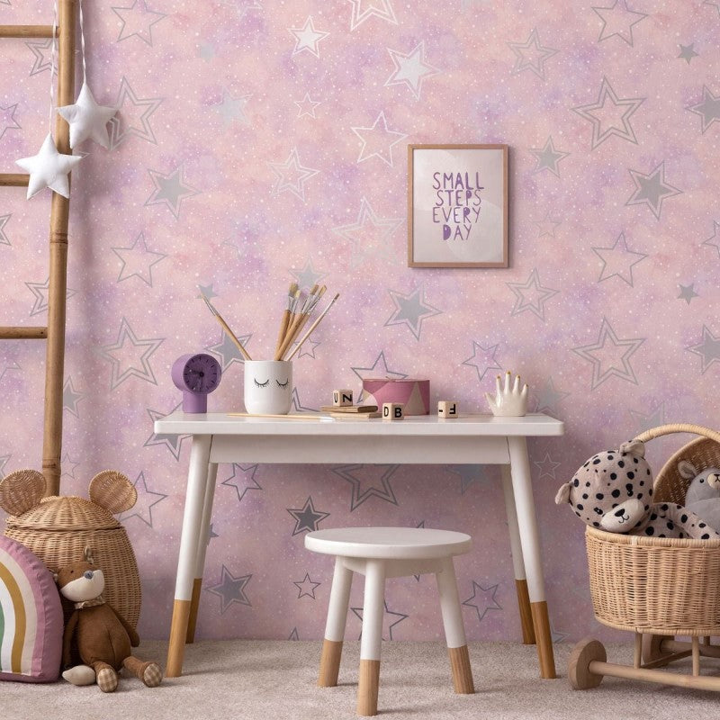 Read More...Spend time surrounded by the stars with the Stardust Metallic Wallpaper, a perfect wallpaper choice for creating a space that feels dreamy, whimsical and full of magic. Available in a beautifully delicate pink and silver colourway, this enchanting design features metallic silver stars that shimmer and shine, bringing a fun and radiant feel to your walls.