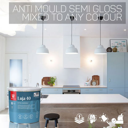 Extremely durable and water based, the Tikkurila Luja 40 has been purposely designed to use in Bathrooms & on Wall Tiles.