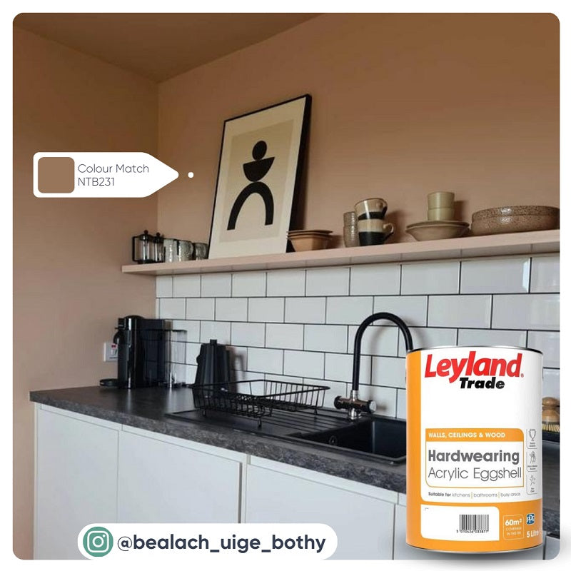 We could always recommend using a hardwearing paint in your kitchen as it is more likely to be in danger of spills and marks. Therefore, for your walls we have selected either the Leyland Trade Hardwearing Matt or Hardwearing Acrylic Eggshell depending on the finish you are looking for.