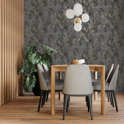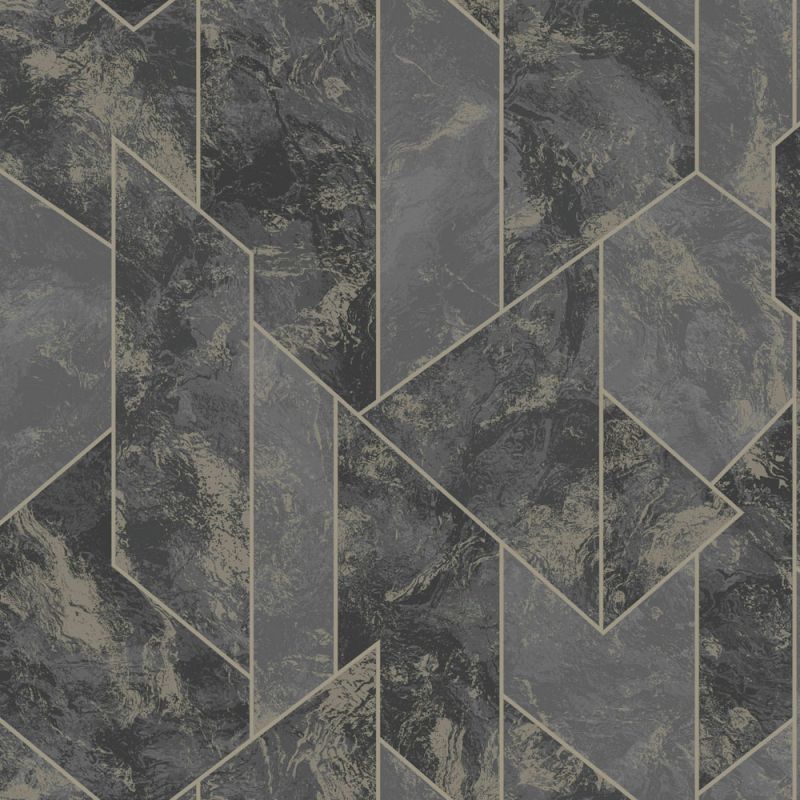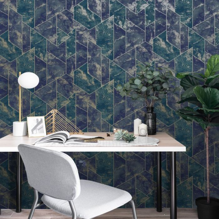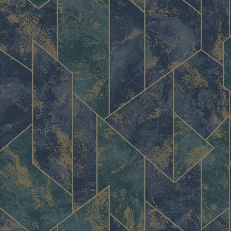 Part of Holden's Patagonia Collection, the wallpaper is inspired by eye catching marble patterns, and features a liquid marble vinyl wallcovering set within a geometric frame whilst also featuring metallic elements. A wallpaper sure to make a unique addition to your walls, it is also available in 3 different colourways including Charcoal, navy & Grey. Easily applied through a paste the wall application, the stylish wallcovering is also scrubbable, with an off-set design match.